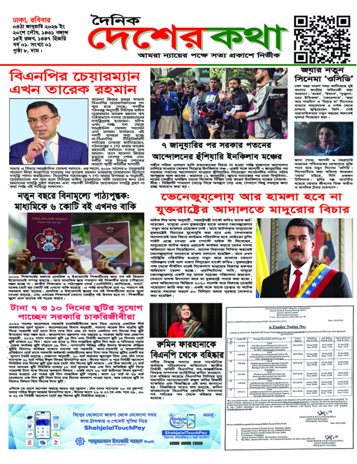 রোববার, ০৪ জানুয়ারী ২০২৬